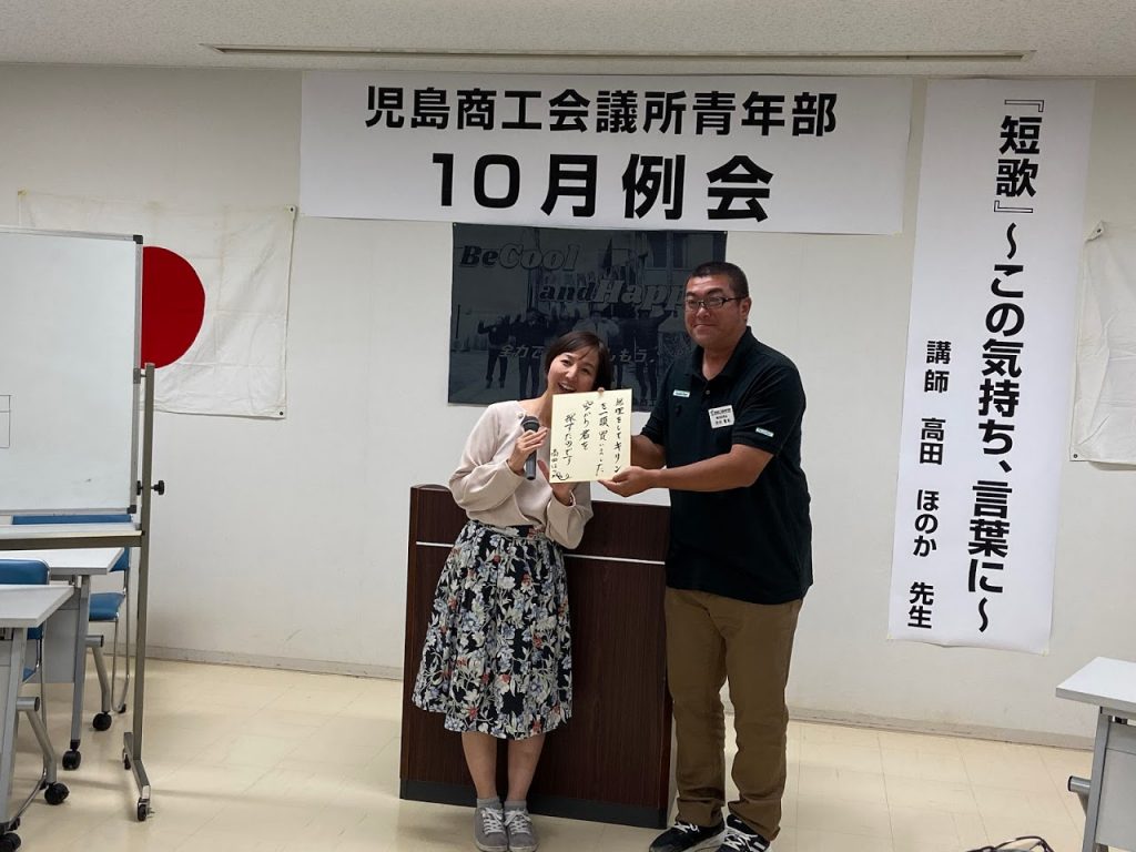 10月7日 10月総会例会が行なわれました。 次年度会長に沼田吉貞君が満場一致で可決されました。 また事業部分では初の試みで短歌を詠むことを行ないました。会員以外の方もお招きして実り多き例会となりました。