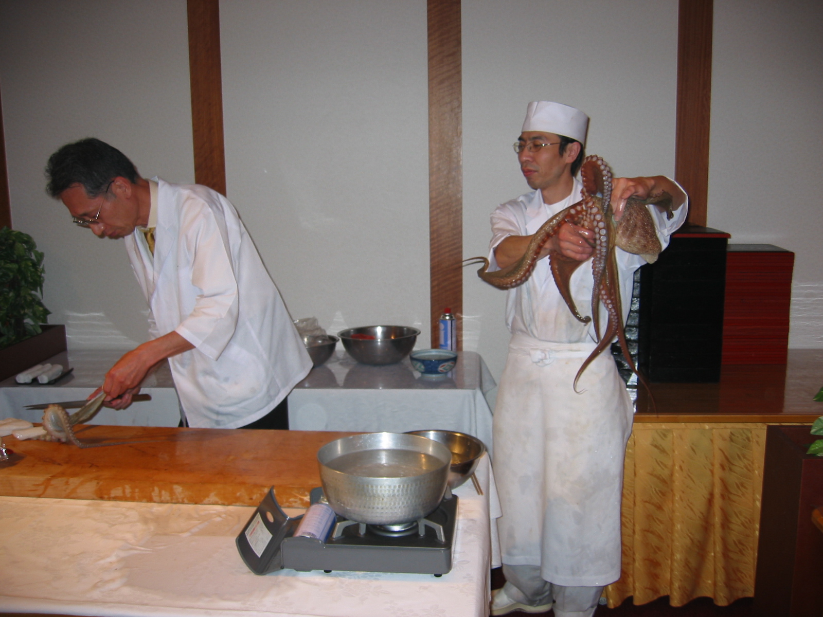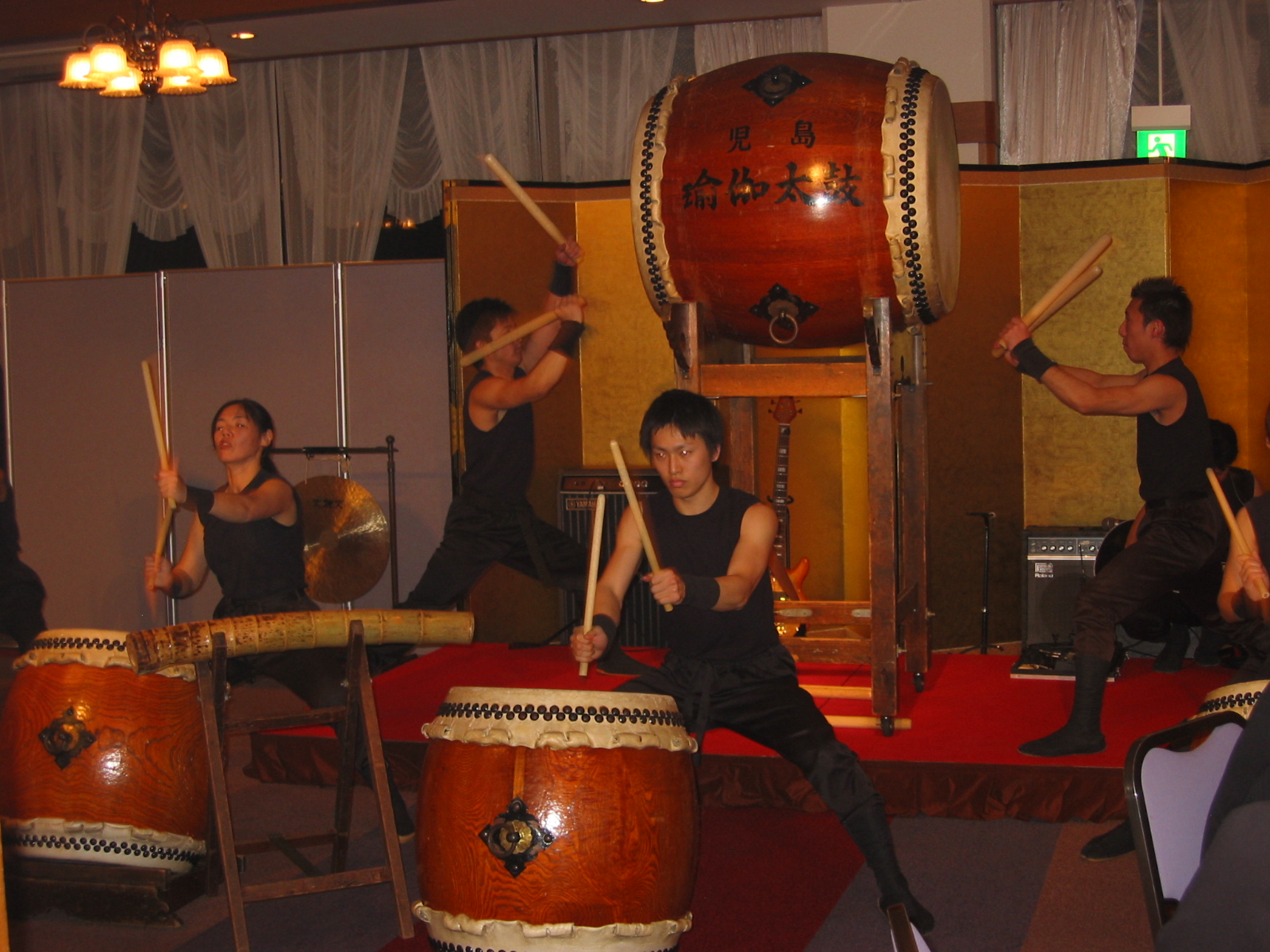 | 森出向理事による乾杯 | 児島瑜伽太鼓による演奏 | 児島瑜伽太鼓による演奏 | 倉敷シーサイドホテル糸川総料理長による「おおだこ」のさばき実演 |
