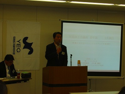 今例会の講師はFMくらしき 代表取締役 大久保憲作氏