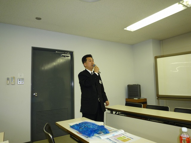 | 挨拶をする高橋会長 | 視察研修会の報告をする中塚研修委員長と塩尻副委員長 |
