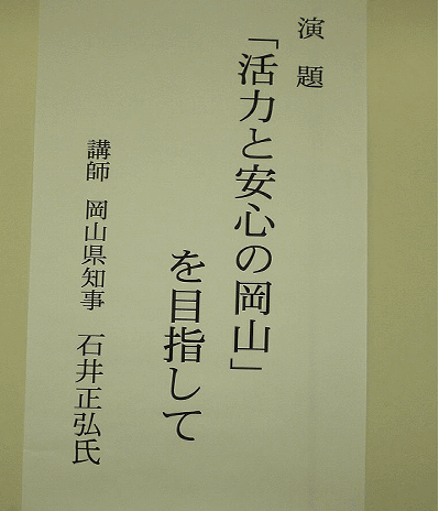 岡山県知事石井正弘氏を講師に