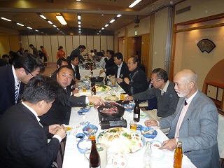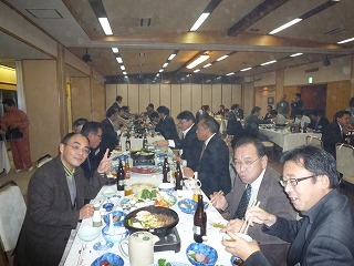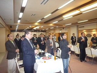 | 岡本先輩(副会頭)による乾杯 | 懇親会のスタート |