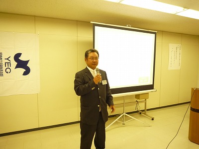 | 綱領を朗読する総務委員会 二梃木くん | 三宅会長挨拶 | 新入会員挨拶 濱野くん(総務委員会) |